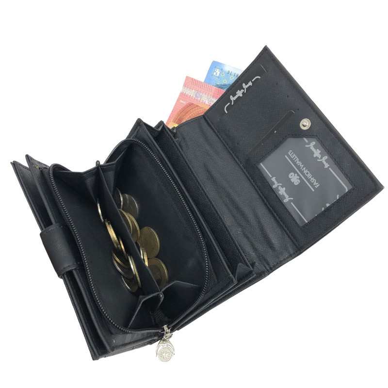 A pénztárca patenttal zárható fő rekeszében található a papírpénztartó rekesze, illetve két rekeszes aprópénztartója is, mely cipzárral zárható. A termék fedelének belső felében kártya- és irattartók kerültek elhelyezésre. A fő rekeszben van egy külön, patenttal zárható rész a kártya- és irattartók, illetve a kisebb nyitott zsebek számára.